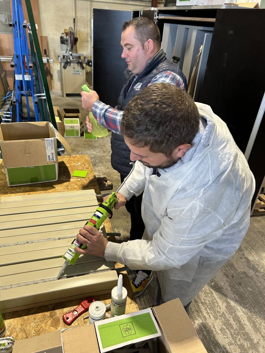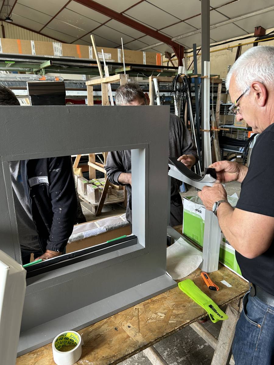 La formation des poseurs, métreurs et commerciaux au calfeutrement des menuiseries afin de mettre à jour et maintenir les connaissances du milieu du bâtiment en termes de réglementation RT2021 RE2020 et DTU 36.5 chez ETANEL à Saint-Jean-du-Cardonnay propose une approche pratique et théorique. Les employés de chez ETANEL apprennent à bien appliquer le calfeutrement d’étanchéité sur des maquettes spécialement conçues pour cet apprentissage. Cette formation aborde également les différents types de poses de menuiseries, garantissant ainsi une parfaite maîtrise de chaque technique d’installation.
