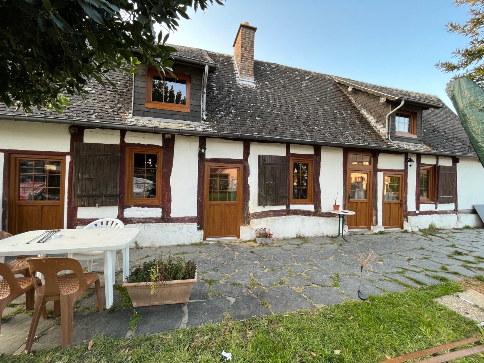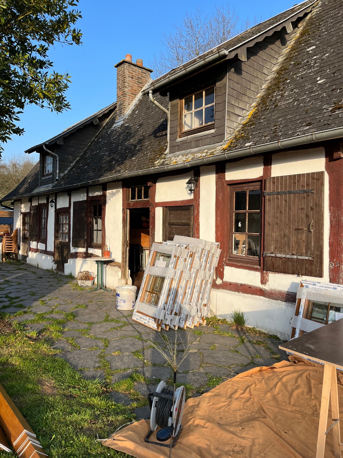 Dans le cadre de la rénovation de cette habitation effectuée par Marvin et Johny, des menuiseries simple vitrage en bois ainsi qu'une porte d'entrée et une porte fenêtre ont été remplacées par des menuiseries PVC de dernier cri.