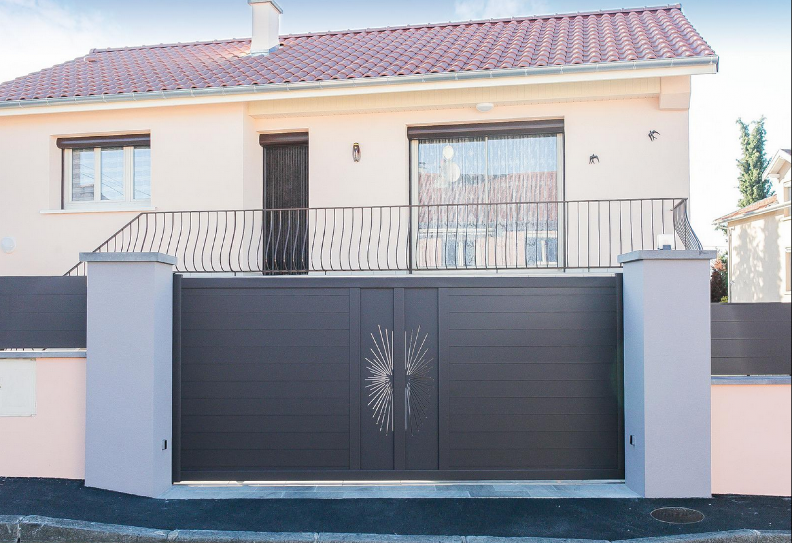 portail battant en aluminium sur mesure, à l'esthétique personnalisé (couleur, hauteur, décorations...) au sein de votre habitation permet de transformer l'aspect esthétique de votre habitation tout en offrant une sécurité supplémentaire.