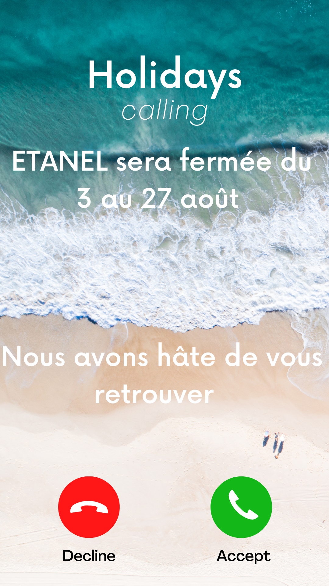 Nous vous retrouverons à partir du lundi 28 août à 09h.