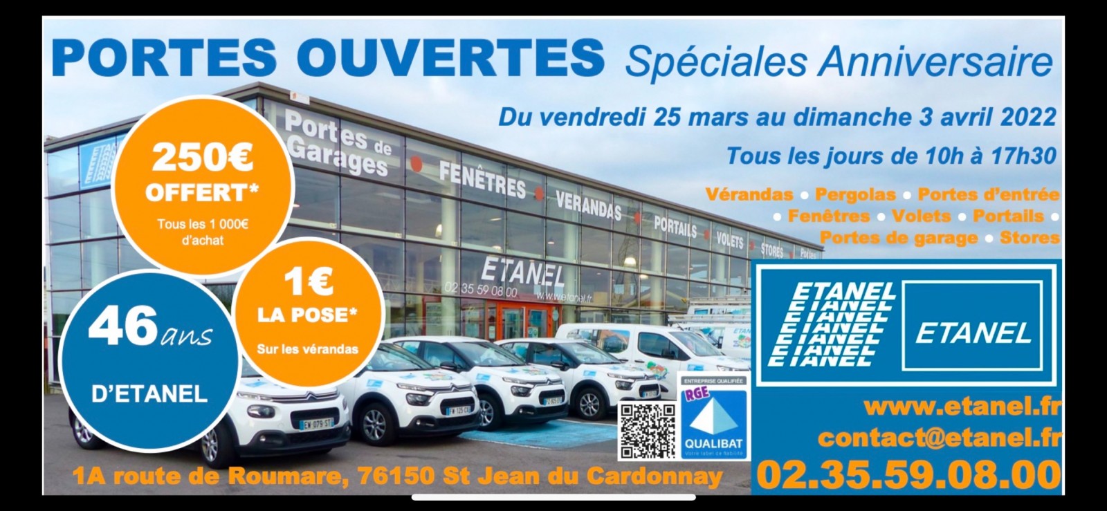 Portes-ouvertes anniversaire ETANEL du 25/03/22 au 03/04/22, tous les jours de 10h à 17h30, même le dimanche.